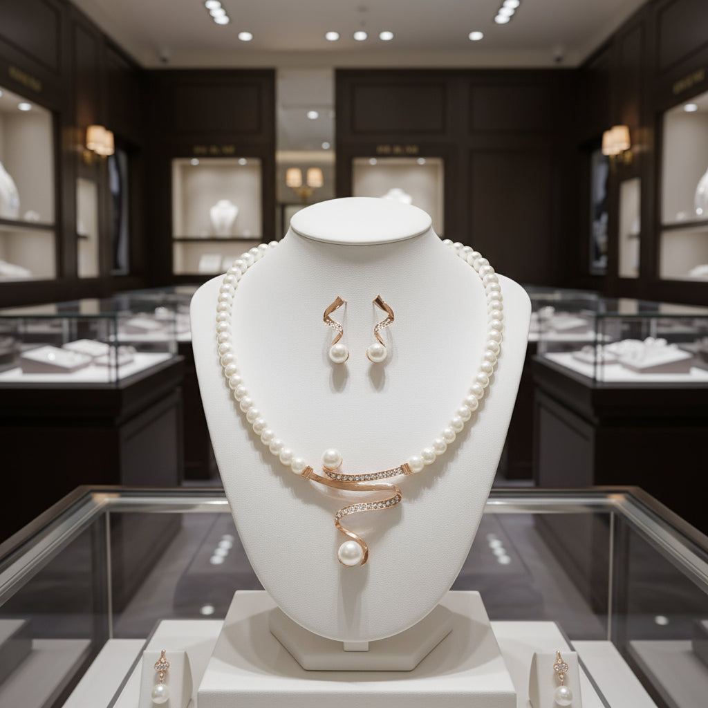 Réinventez le classique avec cet ensemble collier et boucles d'oreilles. Il associe la pureté intemporelle d'un collier de perles fines à un pendentif sculptural. La monture, ornée de zircons scintillants, dessine une élégante vague ou spirale autour d'une perle centrale. Ce bijou est le choix parfait pour la mariée moderne ou pour toute occasion exigeant une sophistication discrète et un luxe contemporain.