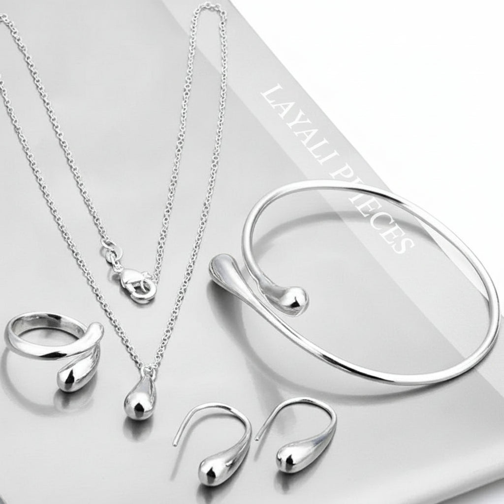 Découvrez le summum du raffinement avec le coffret de Élégance Fluide. Inspirée par la pureté de la goutte d'eau et le mouvement, cette collection de bijoux incarne un style minimaliste, chic et intemporel. Chaque pièce est une mini-sculpture qui ajoute une touche de modernité discrète et sophistiquée à toutes vos tenues.